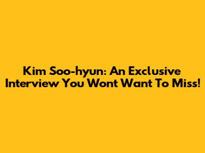 Kim Soo-hyun: An Exclusive Interview You Won't Want To Miss!