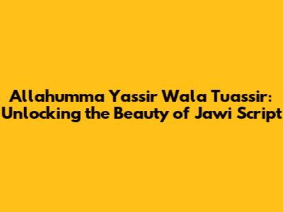 Hey guys! Ever stumbled upon those cool, swirling Arabic-like scripts and wondered what they mean? Chances are, you've seen Jawi! And today, we're diving deep into a super important phrase written in Jawi: Allahumma Yassir Wala Tu'assir. We'll break down the meaning, explore its significance, and even show you how it's written. Buckle up; it's gonna be an awesome ride!