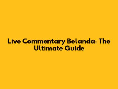 Live Commentary Belanda: The Ultimate Guide