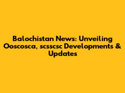 Balochistan News: Ooscosca, Scsscsc Updates & More
