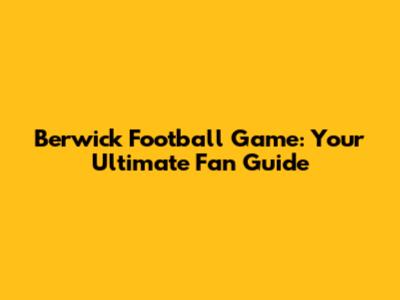 Berwick Football Game: Your Ultimate Fan Guide