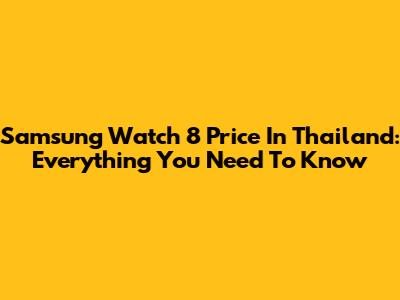 Samsung Watch 8 Price In Thailand: Everything You Need To Know