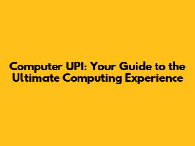 Computer UPI: Your Guide To The Ultimate Computing Experience