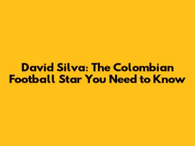 David Silva: The Colombian Football Star You Need To Know