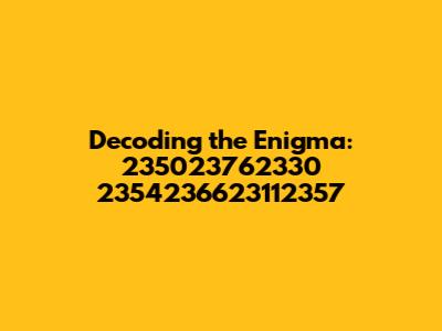 Hey guys! Ever stumble upon a sequence of numbers and feel a little lost, like you've stumbled into some secret code? Well, today, we're diving headfirst into one such enigma: 235023762330 2354236623112357. Sounds mysterious, right? Don't worry, we're going to break it down, explore what it could mean, and try to shed some light on this numerical puzzle. Prepare yourselves for a journey into the world of numbers and possibilities! This sequence might seem random at first glance, but in the realm of data, coding, and even some obscure online communities, numbers can hold significant meanings. Our mission today is to uncover the potential meanings behind 235023762330 2354236623112357. Whether it's a date, a product code, a reference to something specific, or a completely random string, the possibilities are endless. Let's get started!
