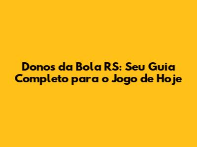 Donos Da Bola RS: Assista Ao Jogo De Hoje E Saiba Tudo!