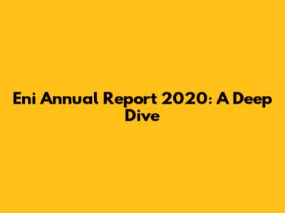 Hey guys! Let's dive into Eni's 2020 Annual Report. This report offers a comprehensive overview of Eni's performance, strategies, and activities throughout the year. Understanding these reports is super crucial for anyone interested in the energy sector, investment, or even just the overall economic landscape. So, let's break it down in a way that's easy to digest.