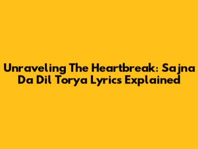 Unraveling The Heartbreak: 'Sajna Da Dil Torya' Lyrics Explained