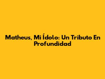 Matheus, Mi Ídolo: Un Tributo En Profundidad