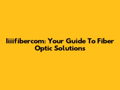 Iiiifibercom: Your Guide To Fiber Optic Solutions