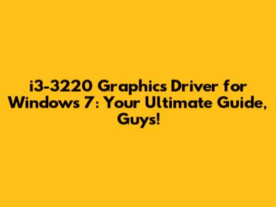 Troubleshooting Common i3-3220 Graphics Driver Problems on Windows 7