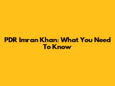 PDR Imran Khan: What You Need To Know