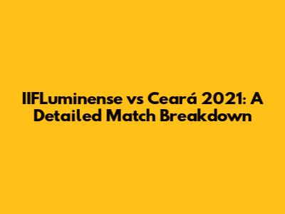 Hey sports fanatics! Let's dive deep into the thrilling match between IIFLuminense and Ceará that went down in 2021. We're going to break down everything, from the key moments and strategies to the overall impact of the game. Get ready for a detailed analysis that covers every angle, ensuring you're well-informed about this exciting encounter. This match was a rollercoaster of emotions, with both teams showcasing their strengths and battling it out on the field. The intensity, the goals, the saves – we’ll explore it all, giving you a complete picture of what went down. Whether you're a die-hard fan or just curious about the game, this analysis is for you. So, buckle up and let's get started on this exciting journey through the IIFLuminense vs Ceará 2021 match!