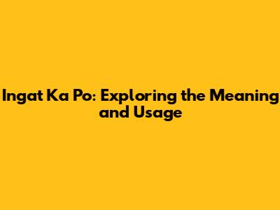 Unpacking "Ingat Ka Po": The Core Meaning