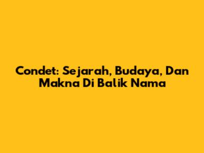 Condet: Sejarah, Budaya, Dan Makna Di Balik Nama