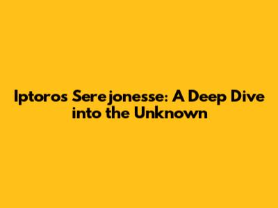 Iptoros Serejonesse: A Deep Dive Into The Unknown