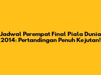 Guys, mari kita bernostalgia sejenak dan kembali ke musim panas tahun 2014! Piala Dunia yang diadakan di Brasil saat itu benar-benar menjadi tontonan yang tak terlupakan, bukan? Khususnya, fase perempat final. Kita akan membahas secara mendalam jadwal perempat final Piala Dunia 2014, yang penuh dengan drama, kejutan, dan momen-momen yang akan selalu terkenang dalam sejarah sepak bola. Ingat betapa serunya kita semua menyaksikan pertandingan-pertandingan itu? Mari kita gali kembali kenangan tersebut dan analisis lebih dalam.