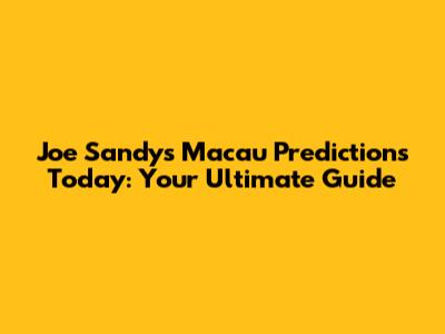 Joe Sandy's Macau Predictions Today: What You Need To Know