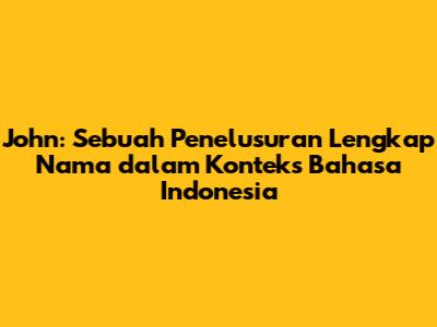 Apakah kalian tertarik dengan nama John? Semoga artikel ini bermanfaat dan memberikan pencerahan tentang nama yang satu ini. Ingatlah, bahwa nama adalah cerminan dari harapan dan doa. Pilihlah nama yang terbaik untuk diri sendiri atau orang terkasih, dan semoga nama tersebut membawa kebaikan dan keberkahan dalam hidup.