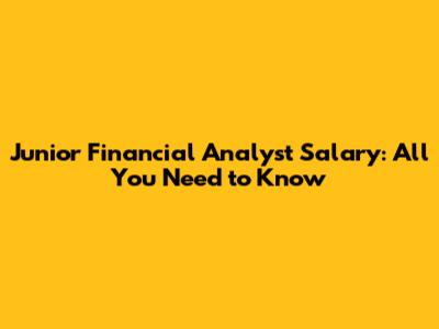 Junior Financial Analyst Salary: All You Need To Know
