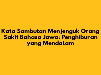 Contoh Kata Sambutan Menjenguk Orang Sakit Bahasa Jawa