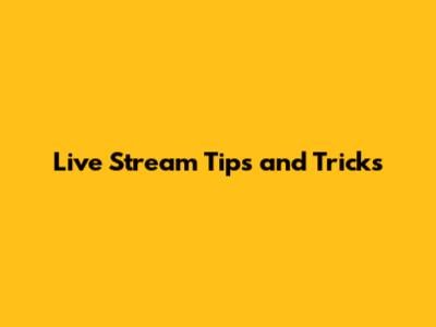 Live Stream Tips And Tricks