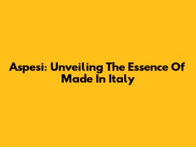 Aspesi: Unveiling The Essence Of "Made In Italy"