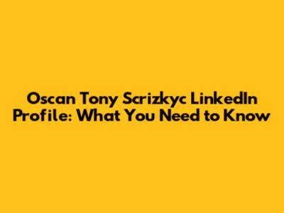 Oscan Tony Scrizkyc LinkedIn Profile: What You Need To Know