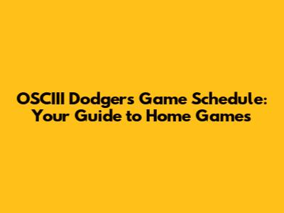 Decoding the OSCIII Dodgers Game Schedule: A Fan's Best Friend