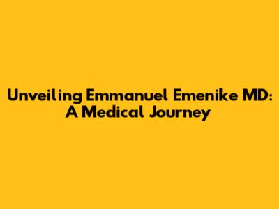 Unveiling Emmanuel Emenike MD: A Medical Journey
