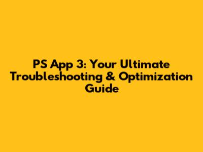PS App 3: Guide To Troubleshooting & Optimizing