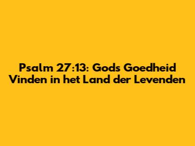 Ik wil je aanmoedigen om Psalm 27:13 vandaag nog tot jouw persoonlijke mantra te maken. Schrijf het op, hang het op een zichtbare plek, en herinner jezelf er regelmatig aan: je zult de goedheid van de Heer zien in het land der levenden. Laat deze woorden je vullen met nieuwe hoop en onwrikbaar geloof. Want in een wereld vol onzekerheid is de zekerheid van Gods goedheid het kostbaarste bezit dat we kunnen hebben. Het is de belofte die ons doet beseffen dat er altijd een reden is om door te gaan, om te strijden, en om te geloven in een betere morgen, niet omdat wij zo sterk zijn, maar omdat God het is. En dat, mijn vrienden, is de essentie van leven in hoop en vertrouwen. Het is het besef dat zelfs als je het gevoel hebt dat je vastzit in een diep dal, er altijd een weg omhoog is, en die weg is verlicht door de onfeilbare goedheid van God. Wat een ongelooflijk voorrecht om zo’n God te hebben, toch? Laten we deze waarheid koesteren en delen met anderen, zodat ook zij de troost en kracht van Psalm 27:13 mogen ervaren. Want de wereld heeft juist nu behoefte aan deze boodschap van hoop, van Gods goedheid die sterker is dan elke duisternis. Dus ga eruit, leef in geloof, en verwacht Gods goedheid te zien, want Hij is trouw en zijn goedheid houdt nooit op. Blijf geloven, blijf hopen, en blijf zoeken naar zijn hand in alles wat je doet. Dit is de ware kracht van dit prachtige, tijdloze vers, dat ons telkens weer de weg wijst naar licht en leven.