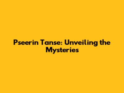 Pseerin Tanse: Unveiling The Mysteries