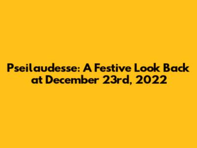 Hey everyone! Let's rewind the clock and dive into a special day: Pseilaudesse on December 23rd, 2022! This date holds some cool memories, and I'm stoked to share them with you. December is a month filled with holiday vibes, cozy gatherings, and the excitement of the upcoming New Year. This specific day was a perfect blend of all of those things, creating an experience worth remembering. Let's break down the highlights and what made this day so unique. What makes Pseilaudesse so special is its ability to bring people together, fostering connections and creating shared experiences. From the planning stages to the day itself, it was a group effort fueled by excitement and anticipation. The details of the day, the people involved, and the overall atmosphere, are the things that transformed a regular day into something extraordinary. This article will be a journey through the events, the moments, and the feelings that made December 23rd, 2022, a day to remember. So, grab a warm drink, get comfy, and let's stroll down memory lane. We'll explore the atmosphere, the activities, and the people that came together to make it all worthwhile. Trust me, it's going to be a fun trip! And as we go through this, think about the special days you had, the ones that stick in your mind because of the feeling, the people, or something special that made it shine.