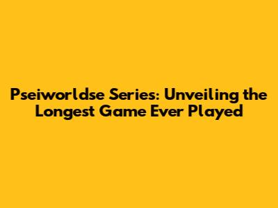 Pseiworldse Series: Unveiling The Longest Game Ever Played