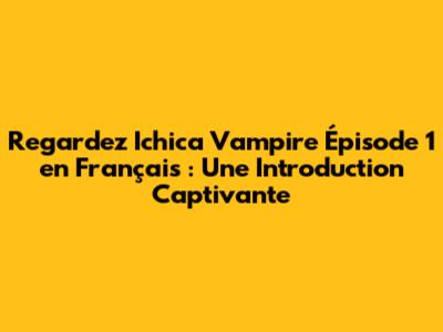 Pourquoi Regarder Ichica Vampire Épisode 1 en Français ?