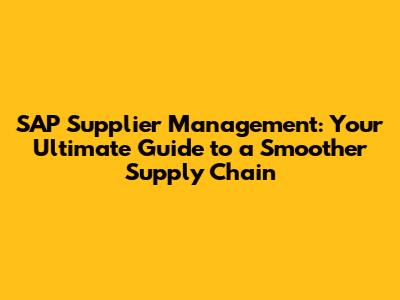 SAP Supplier Management: Streamlining Your Supply Chain