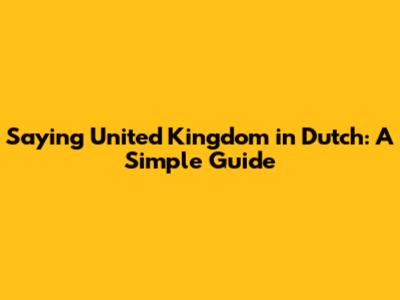 Saying United Kingdom In Dutch: A Simple Guide