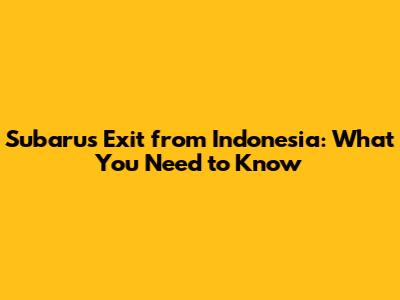 Subaru's Exit From Indonesia: What You Need To Know