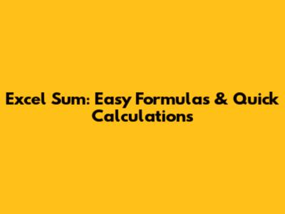 Excel Sum: Easy Formulas & Quick Calculations