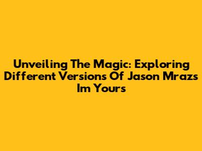 Unveiling The Magic: Exploring Different Versions Of Jason Mraz's 'I'm Yours'