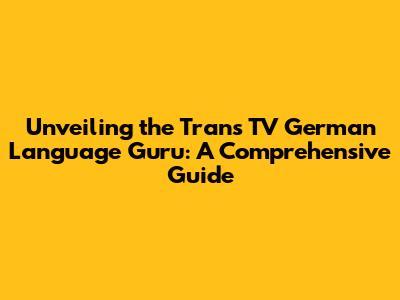 Unveiling The Trans TV German Language Guru: A Comprehensive Guide