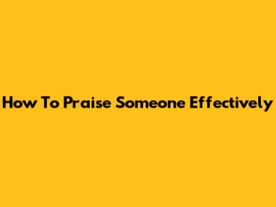How To Praise Someone Effectively