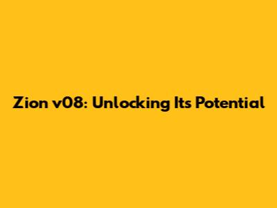 Zion V08: Unlocking Its Potential